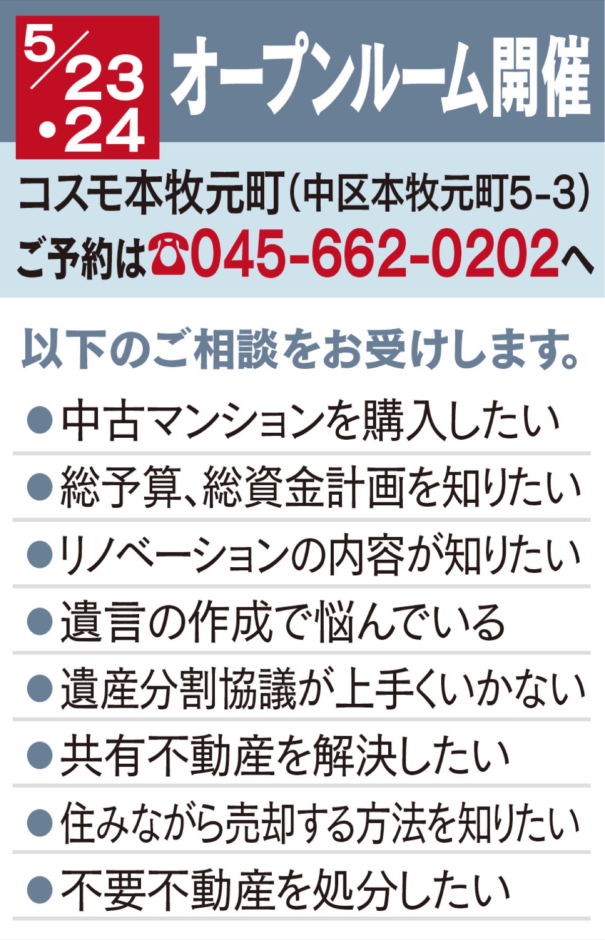 新都市総合管理(株)は5月23日・24日、本牧元町の中古マンションでオープンルームを開きます。前回に引き続き代表・右手がマンション売却までの道のりを紹介します。