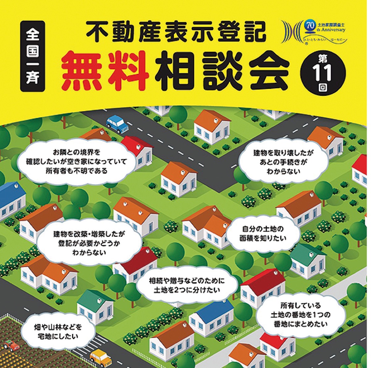「全国一斉不動産表示登記無料相談会」として神奈川県土地家屋調査士会が主催するもので11回目=写真。問い合わせは同会【電話】045・312・1177へ。