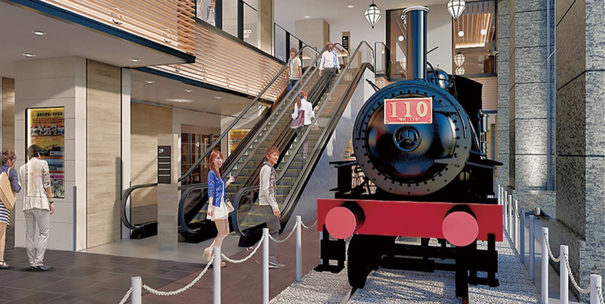 「鉄道発祥の地」にちなみ、実物の110形蒸気機関車や再現された客車、ジオラマなどが楽しめる「旧横ギャラリー」も併設される。