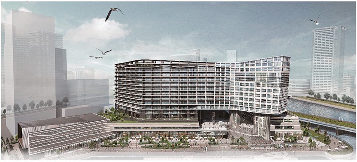 公表された概要などによれば、地上14階、地下2階建ての建物で、1〜3階には最新デジタル技術と本物の海洋生物が融合する水族館や水辺と平行に連なるレストラン、上層のホテル部分にはウェディング施設も設けられる。ホテルの運営に関しては、フォーシーズンズホテル&リゾーツを含む国際的なラグジュアリーホテルブランドを誘致する予定だという。