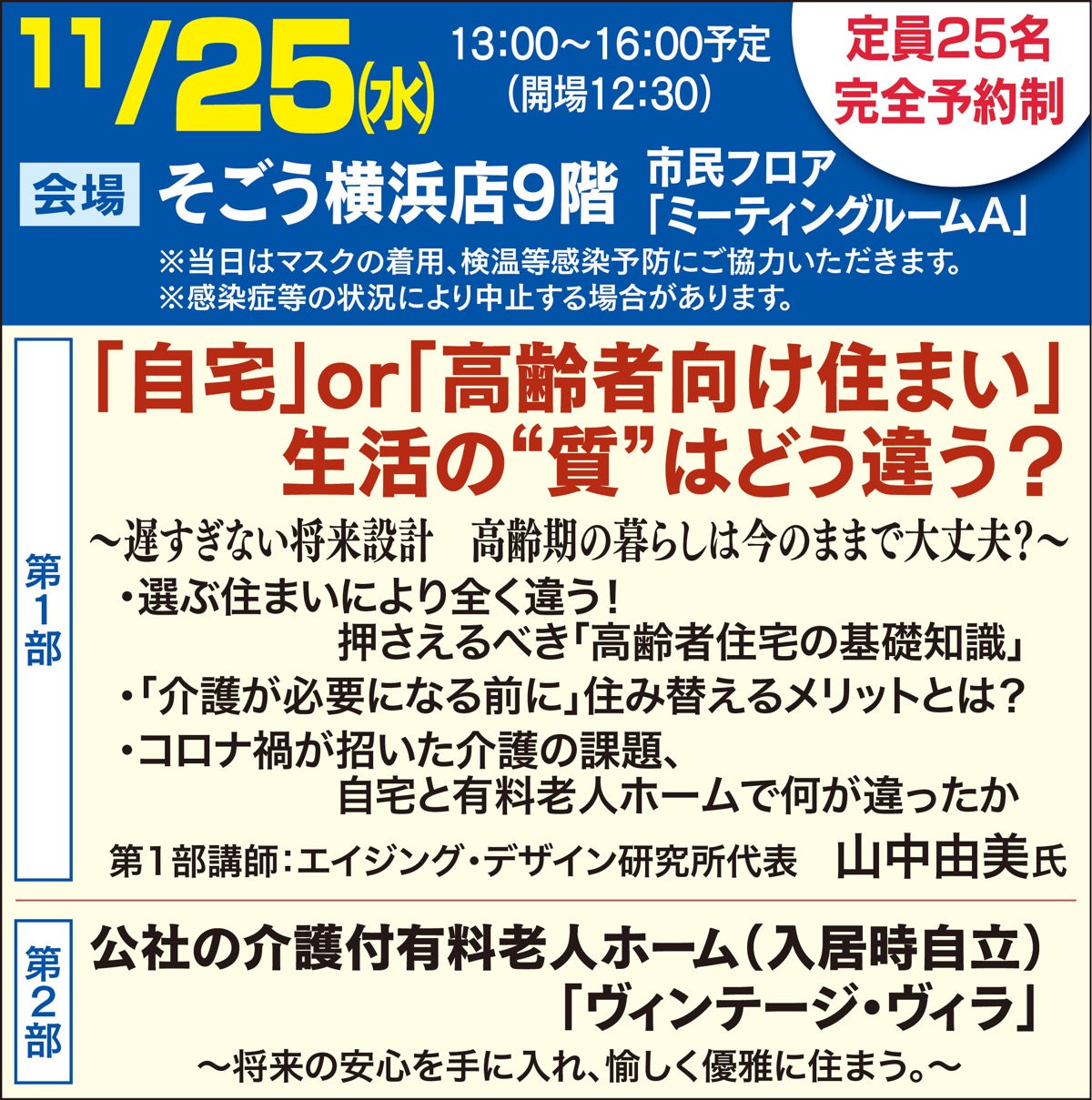 神奈川県住宅供給公社主催 シニアライフセミナー 参加無料