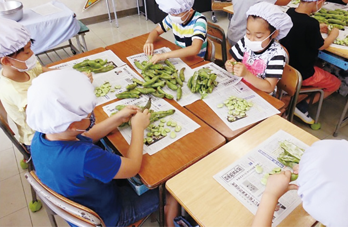 その他にも、とうもろこしの皮やそら豆のさやを自分たちでむいたものを給食に出したり、中庭をテラス席にして食べる「中庭給食」(昨年で終了)などの体験を通して、子どもたちの食への興味を育んできた。しかしコロナ禍である今年度は、これまでの活動が全て中止に。小宮校長は「今回の受賞は学校、家庭、地域が連携した取組が評価されたと思う。感染症が収まってきたら、またコミュニケーションを取りながら食を楽しむという経験をさせてあげたい」と話した。