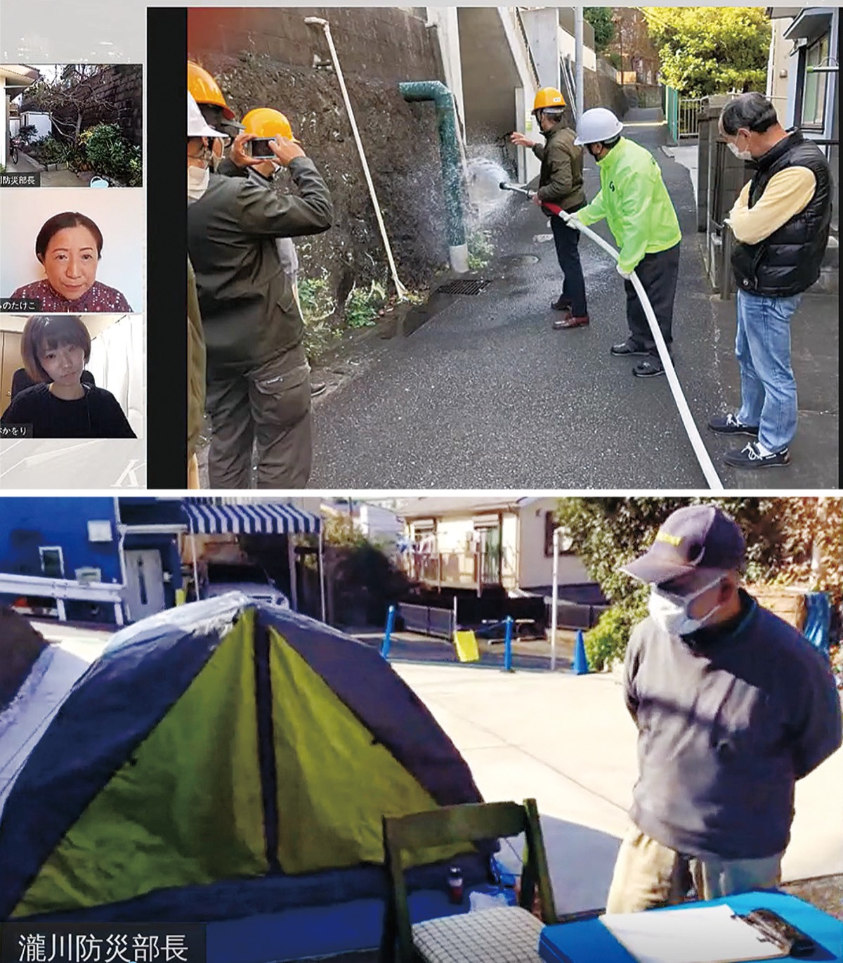 同自治会は、新型コロナに伴う緊急事態宣言の解除後すぐに役員会をウェブ会議で実施するなど、ウェブを積極的に活用しながら自治会活動を継続している。防災訓練は同自治会の防災部(瀧川龍雄部長)が企画し、リアルタイムの活動と配信を交えて実施した。