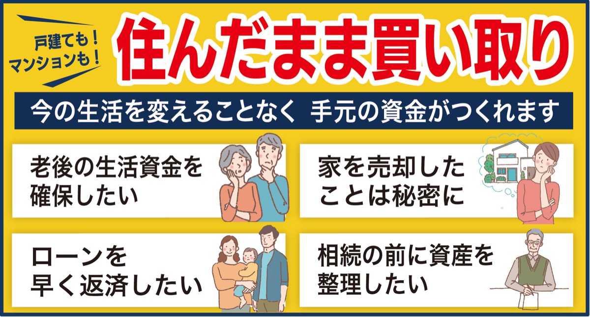 「相続の前に資産を整理したい」「ローンを早く完済したい」「老後の資金を確保したい」等の悩みを抱える人は、相鉄不動産販売(株)の新サービス「住んだまま買い取り」がお勧め。