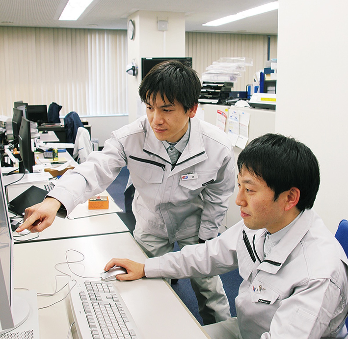 みなとみらい21(MM)地区へ冷暖房や給湯に使う熱エネルギーを供給するみなとみらい21熱供給株式会社。このコーナーでは、同社で働く人にスポットを当て業務内容などを紹介する。第3回目は、運転管理グループの課長代理・盛さんと副主事・桑島さんに熱供給を省エネに導く日々の仕事について聞いた。