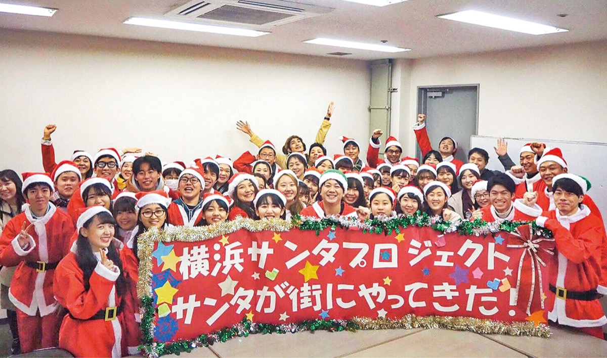 09年からは、市内の企業や団体と連携し、若者と一緒にサンタに扮して、地域の福祉施設などへの訪問や広場などの公共空間を活用したイベント、街の清掃活動など、「横浜に笑顔を届ける」大規模なプロジェクトを実施。コロナ禍になる前には、毎年1000人以上が参加していた。