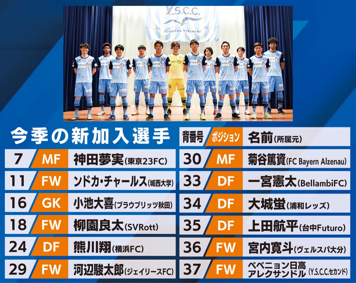 一方、J1の横浜FCからDF熊川翔、浦和レッズからDF大城蛍など守備陣の補強のほか、城西大学からFWンドカ・チャールスなど攻守において充実を図る12人が新加入となった。