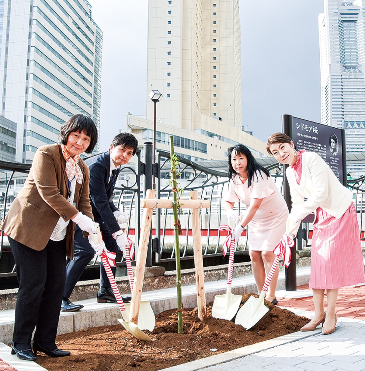 26日の植樹には、中区の直井ユカリ区長と中土木事務所の中山昭所長、シドモア桜の会 横浜の梅本千晶代表理事らが立ち会った。梅本さんは「目立つ場所への植樹と記念碑を設置いただき、大変光栄」と感謝していた。