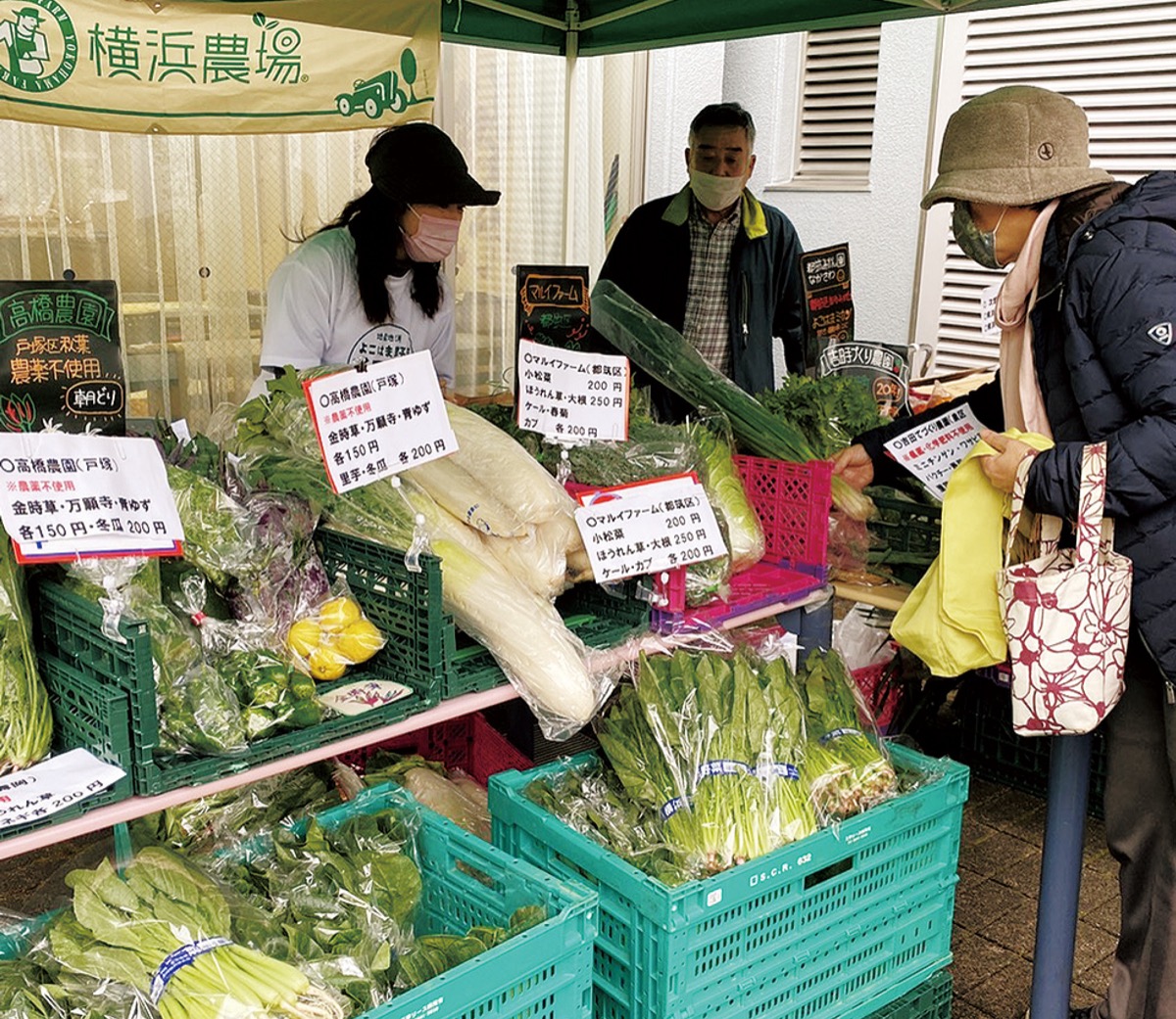 「”くるくる”と付けたマルシェの名前には『(出張販売で)横浜野菜がくる』や、消費者と生産者をつなぎ『くるくると回る』様子を表しています」と、同NPOの副理事長を務める三浦妙子さん=中区在住。近隣に住む高齢者や、子育てサロンのある日に開催していることから若い主婦の姿も多いという。同施設の地域活動交流コーディネーターを務める鈴木ゆりりさんは、「買い物客同士野菜を通して会話が生まれたり、施設を知ってもらうきっかけになっている。味の美味しさはもちろん、こうした交流を楽しみに来る方も多い」と話す。