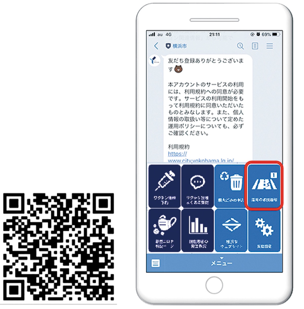 LINEを通しての情報提供や修繕要請は市の公式アカウントを友だち追加することで利用可能。24時間受け付け、道路の陥没や土砂崩れ、倒木といった緊急性を要する対応が必要な場合はこれまで通り、各区の土木事務所での電話による通報受付も継続する。