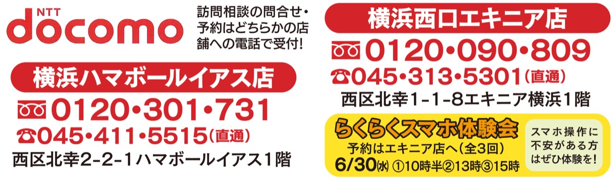 ドコモショップ横浜ハマボールイアス店、エキニア店