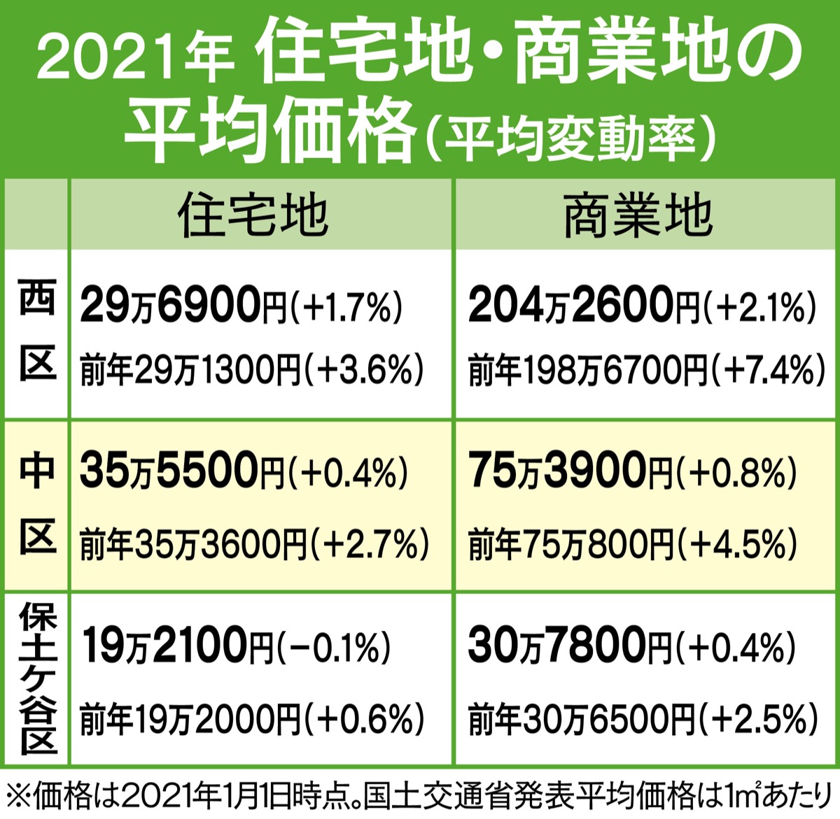 その状況においても、住宅地は西区で1%以上の上昇がみられた。中区を含む6区は1%未満の上昇、その他は横ばい、または下落となった。商業地も上昇率は鈍化したものの、オフィスを中心とするエリアでは、コロナ禍でも賃料の下落はほとんどみられず、良好な資金調達環境もあり上昇基調を維持している。