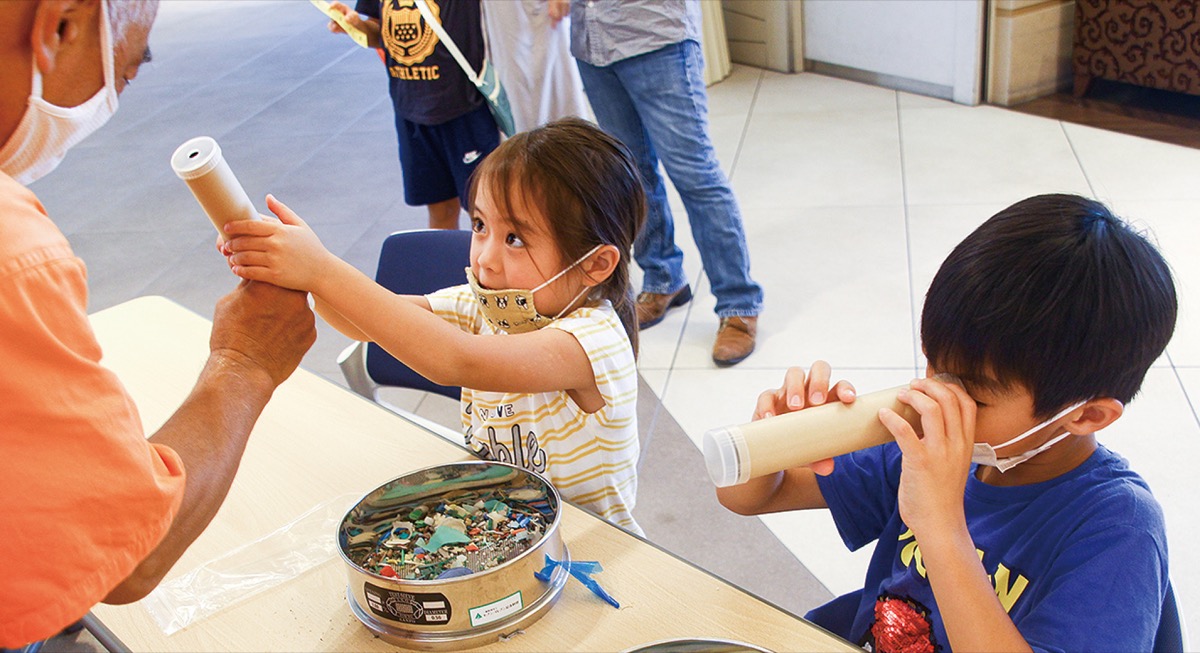 大岡川や茅ケ崎海岸などで自然環境の保全活動を行うNPO法人海の森・山の森事務局(豊田直之理事長)は7月22日と23日に海洋プラスチックごみを活用した万華鏡作りのワークショップをみなとみらいの商業施設MMテラスで開いた。
