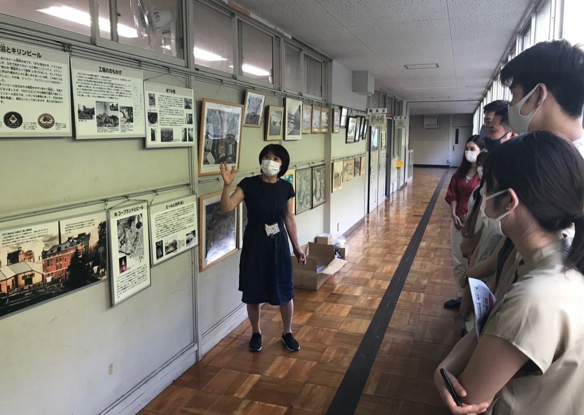当日は首都圏・関東甲信越配属統括本部の新入社員18人が参加し、外国人墓地にある「日本のビール産業の祖」といわれるウィリアム・コープランド氏の墓地やキリン園公園などゆかりの地を巡った後、北方小を訪問。横浜工場の担当者からキリンビールと北方小学校の歴史上の繋がりについての講義を受けた。