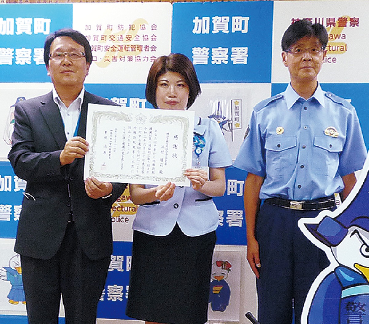 加賀町警察署(上原正署長)は、7月21日に詐欺を未然に防いだとして横浜幸銀信用組合本店に感謝状を贈呈した。