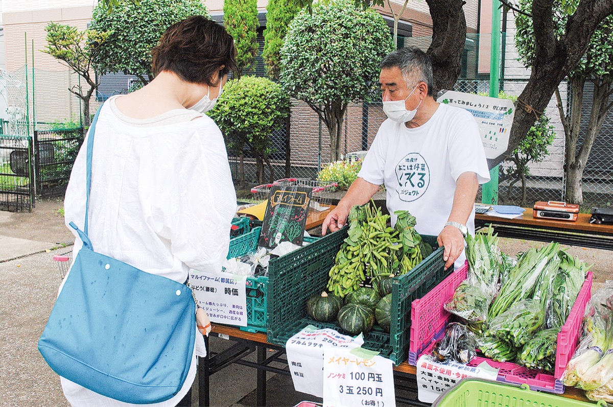 中本牧コミュニティハウス=中区本牧町2の351=で横浜産の野菜を販売する「くるくるマルシェ」が開催された。