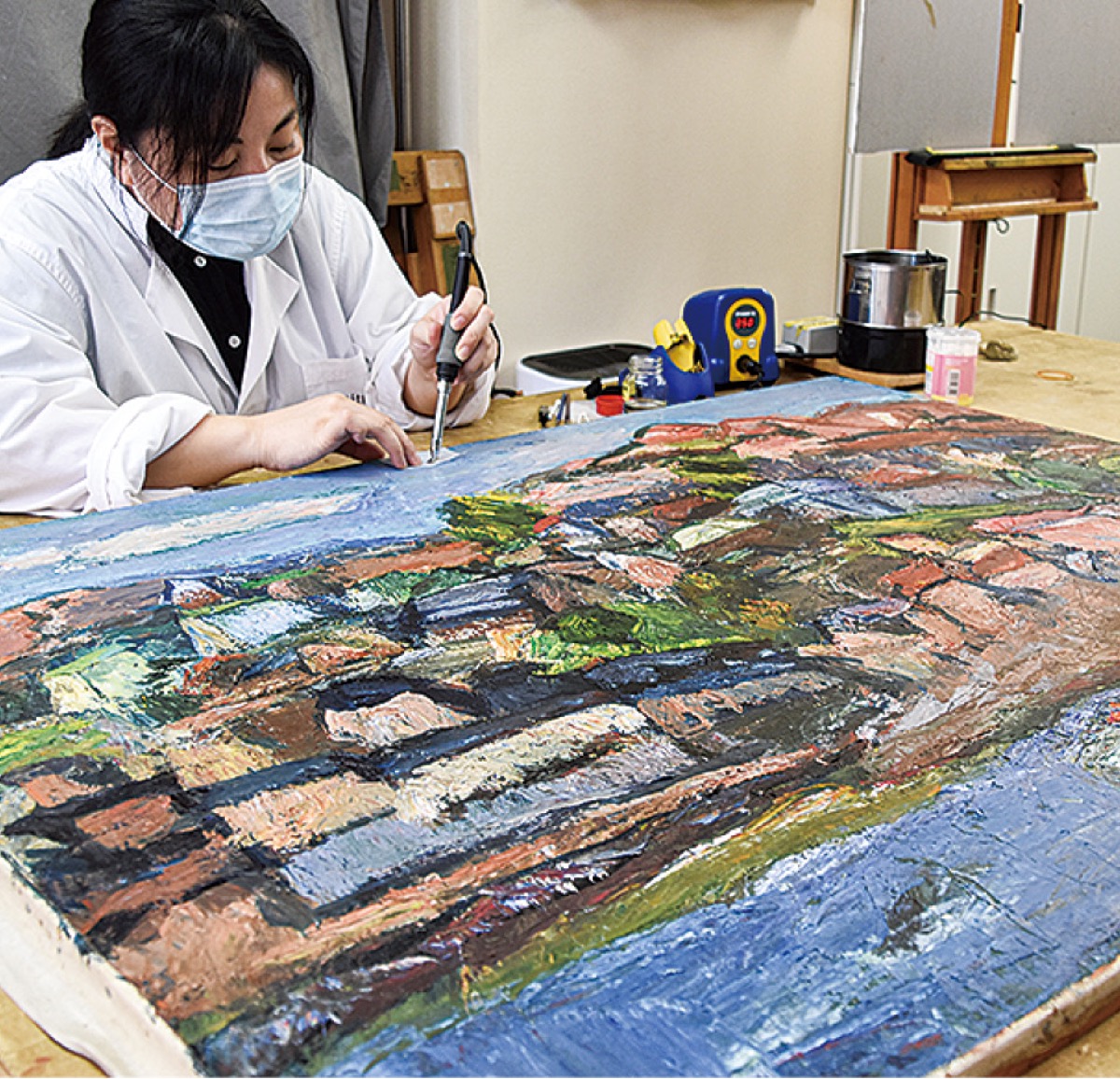 NPO法人美術保存修復センター横浜=中区弥生町2=は、寄付金を活用し公共施設が持つ絵画などの美術品を修復する新規プロジェクトを立ち上げた。第1弾として8月10日から、真鶴町立中川一政美術館の油彩画の修復を開始した。