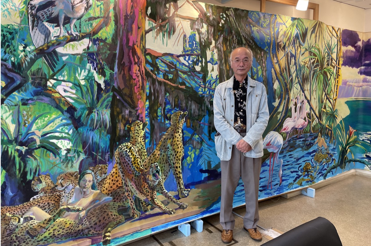 アフリカの草原をイメージして描いた縦2.05m×横20.5mの大作。