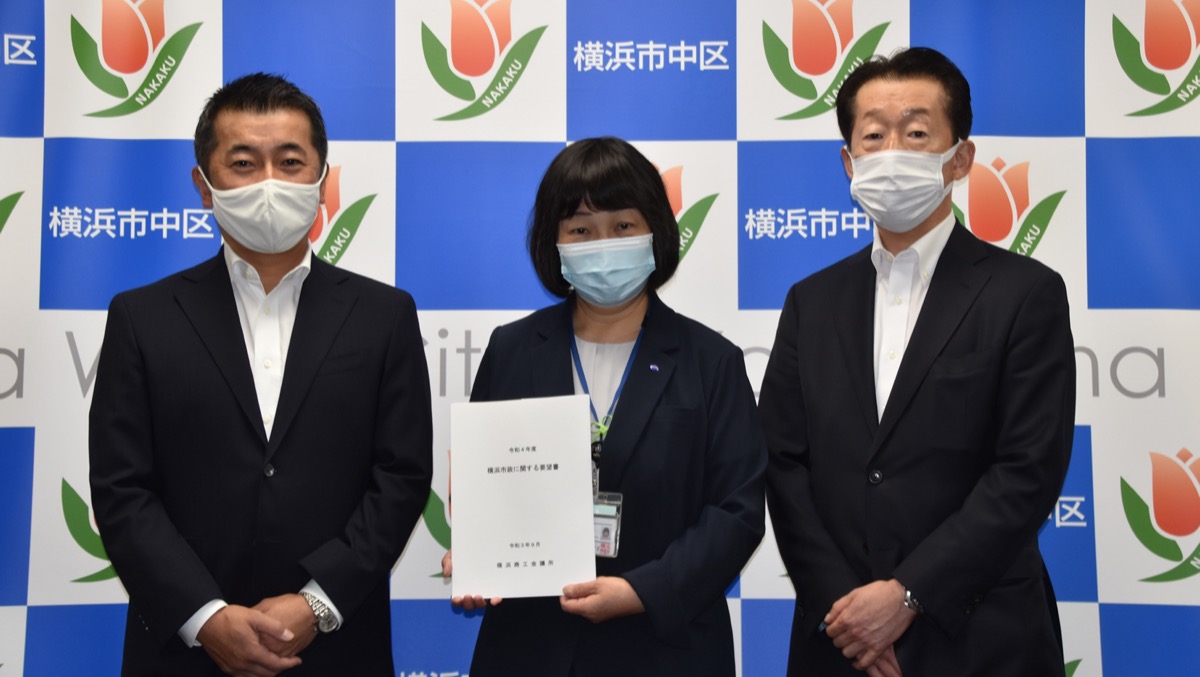 西区と中区の事業者からなる横浜商工会議所の中部支部(北川剛司支部長)は、今年も地域活性化を目的とした要望書を両区長に手渡した。9月16日に北川支部長と白井崇雄副支部長が両区役所を訪問した。