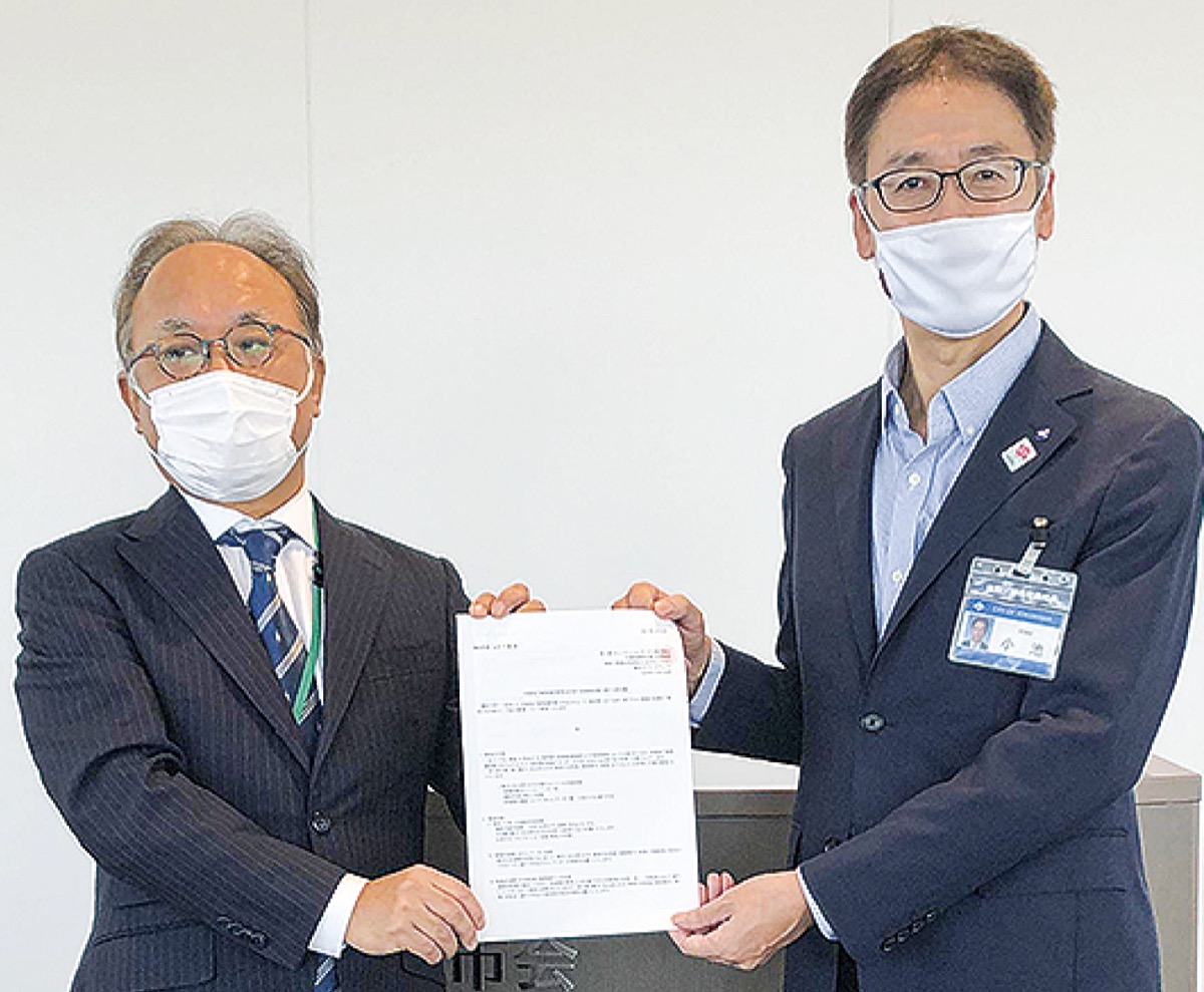 みなとみらいに本社を構える富士通コミュニケーションサービス(株)(山本享史代表取締役社長)が代表企業となり、「市営地下鉄高島町駅周辺の歩行者環境改善に関する要望書」を9月8日、山中竹春横浜市長宛に提出した。要望書は小池政則都市整備局長が受け取った。