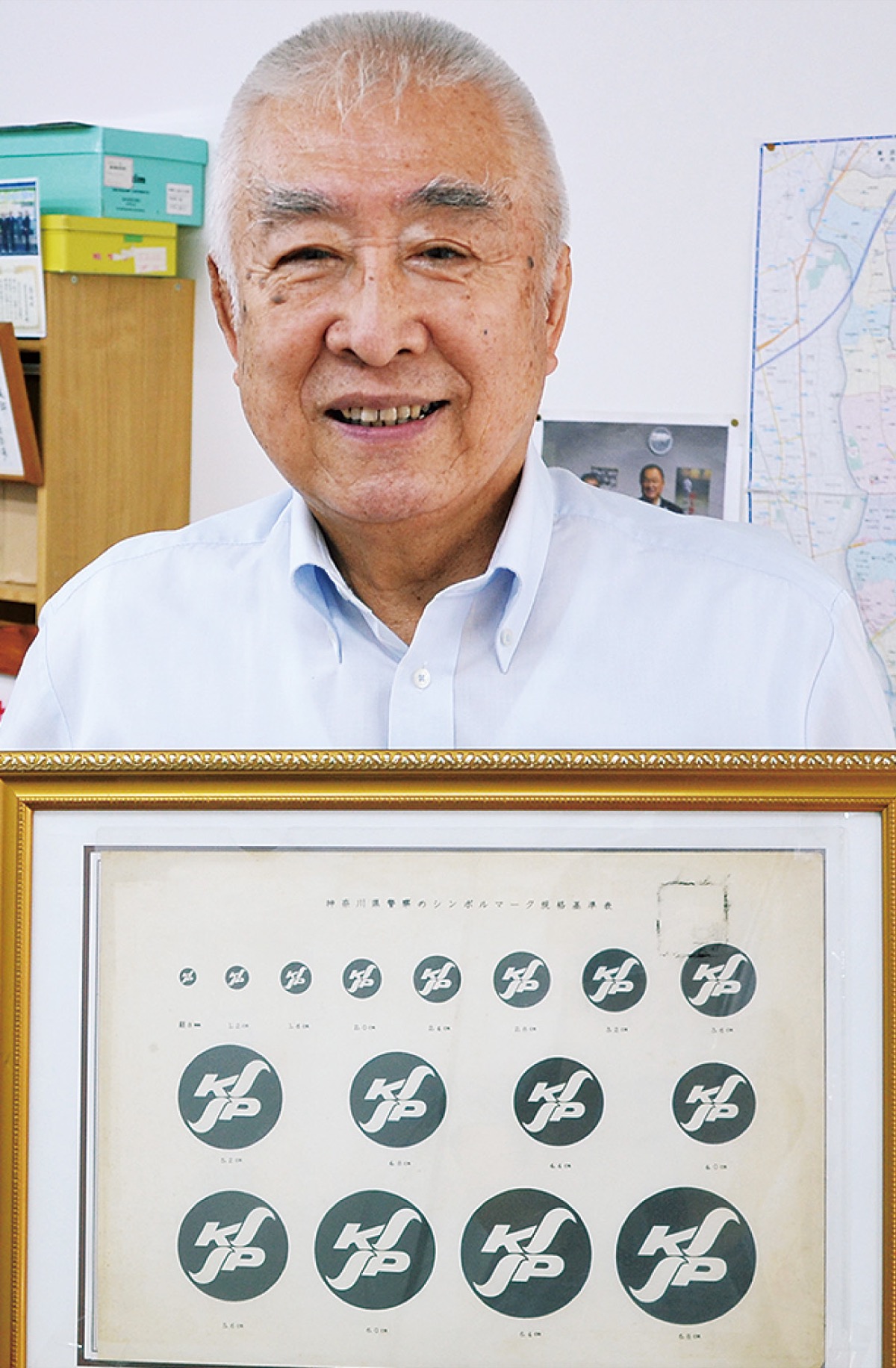 取材を進めると、何と「県警のシンボルマーク」も伊藤さんがデザインしていたことが判明!パトカーや警察官の制服にさり気なく付いているあのマークだ。当時の本部長が「全国初となる県警のシンボルマークを作ろう」と提案し、伊藤さんをはじめ絵心のある5人からデザインを募集。署内選考では一度落選していた伊藤さんの作品を再審したデザイン会社のプロが採用し、79年3月にお披露目された。マークは県の鳥・かもめに、神奈川のKと警察のPを組み合わせて図案化。丸が団結を表している。