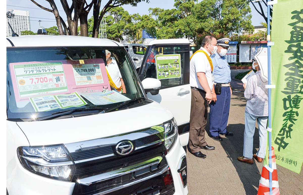 またブレーキとアクセルの踏み間違いによる事故が社会問題化しているなか、神奈川ダイハツ販売=本社・中区長者町=の協力で、自動ブレーキなどの機能を備えた「サポカー(安全運転サポート車)」の展示も行なわれた。