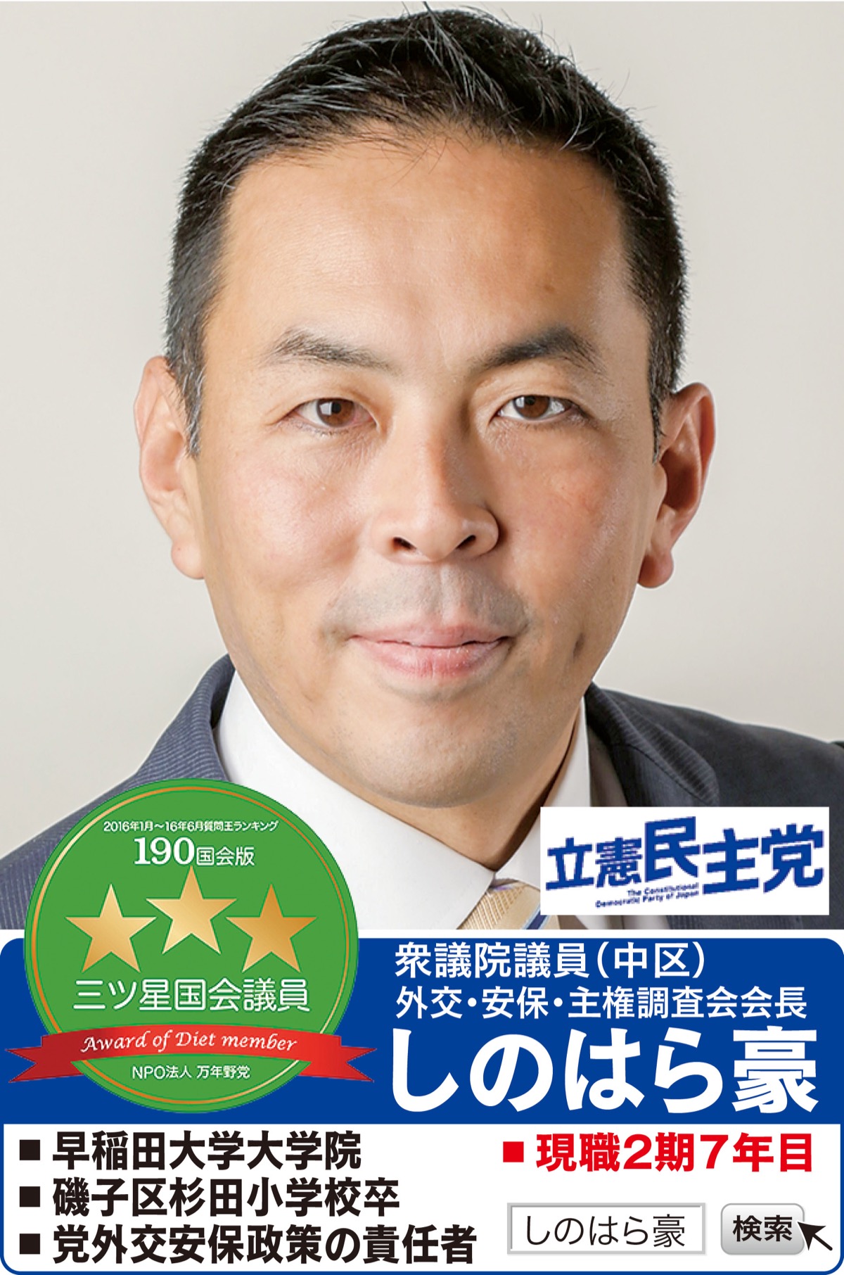 立憲民主党 衆議院議員(現職2期)しのはら豪(46歳)