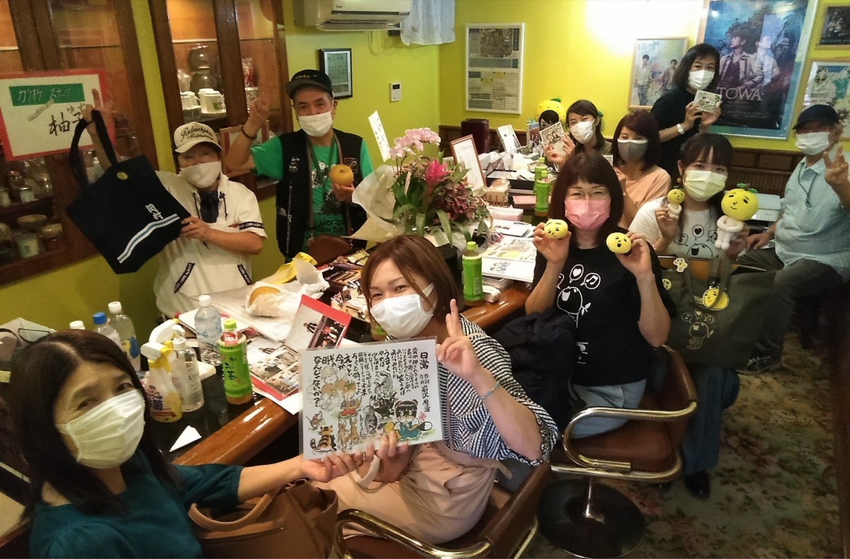記者が訪れたときには、たまたまなのか「母娘で来ました」というペアが3組も!交流拠点のオープンを聞き、栃木県から駆けつけたという岡部純子さん(63)と美佳さん(37)は、2年ほど前に聖地巡礼で岡村に遊びにきた際、いづみさんに道案内をしてもらった以来の仲だとか。同じようにゆずファンの交流拠点になっているバー『くず星』=東京都=のオーナーがネットの情報を聞きつけて来場したり、ファン同士のオンライン飲み会に参加した人たちが交流拠点で偶然再会するという場面にも遭遇するなど「こうやって交流が生まれるのがいいよね!」と正さん。いづみさんも「全国からたくさんの人が来てくれて本当に嬉しい」と笑顔を見せていました。