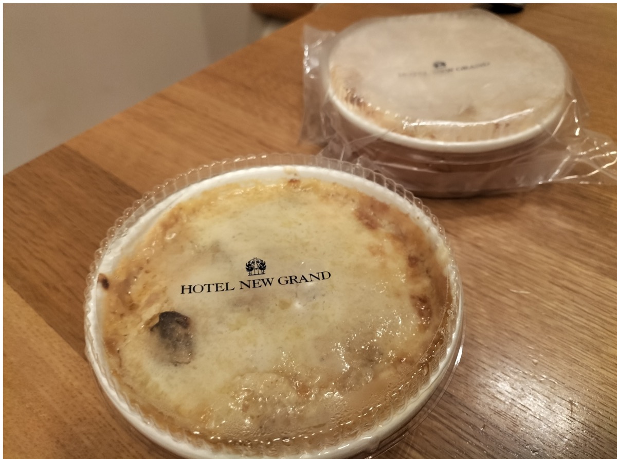 実はニューグランドのシーフードドリアは、記者の大、大、大好物!学生時代からドリアは好きでしたが、初めてここのドリアを食べた時の衝撃は今でも忘れません。コロナ禍で近頃ホテルでもテイクアウト商品が充実していますが、ドリアは初めて。クール便で届き、賞味期限は1ヶ月。しばらく冷凍庫の中で眠らせて、週末の楽しみにいただきました。好きな時に食べられるのも冷食ならではですね。