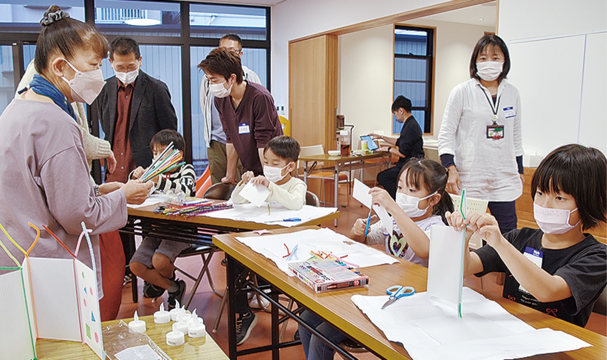 利用できるのは小学生で学校は問わない。開場は午後2時30分から6時まで。宿題や読書、玩具遊び、横になれる休憩コーナーなどがあり、4時からは講師によるイベントも。10月28日には6人の子どもが参加し、造形作家の松本光世さんによる「光のアートクラフト」づくりが行われた。