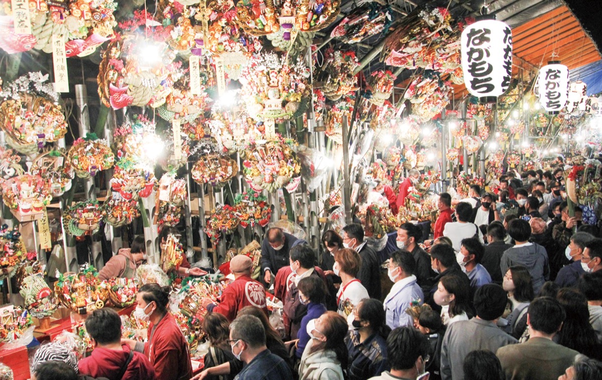 南区真金町の金刀比羅大鷲神社の例大祭「酉の市」が11月9日に執り行われた。昨年は新型コロナウイルスの影響を考慮して取りやめていた露店が2年ぶりに復活し、多くの人が集まった。