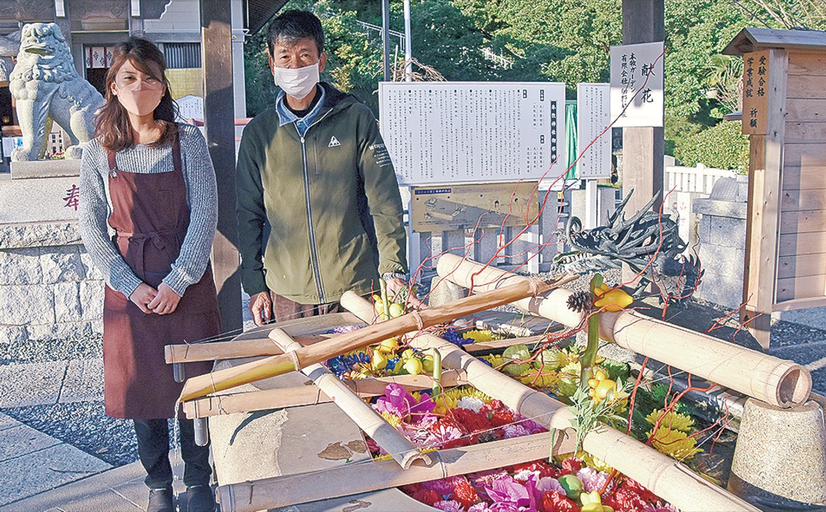 花の入れ替えは細野会長と娘の長谷川紀美子さん(38)が担当する。毎週、全体のイメージは紀美子さんが決めている。「七五三なので明るく可愛らしくしています」と紀美子さん。