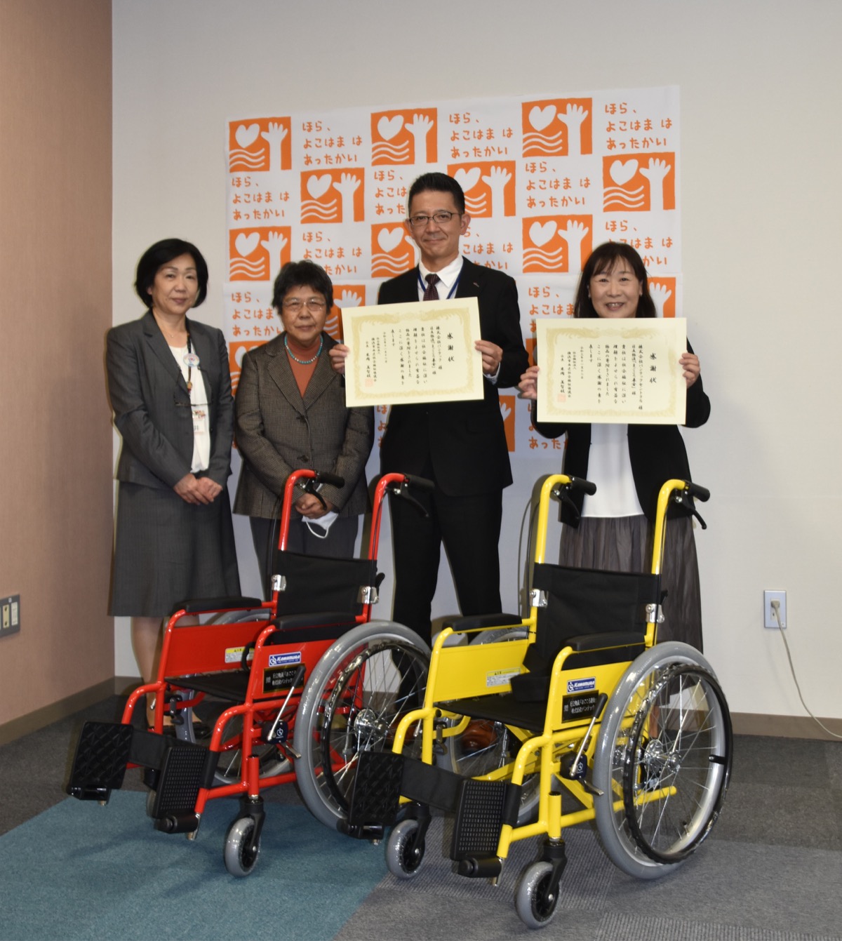 同じグループ会社である両社は、昨年、神奈川区からみなとみらい21地区のオフィスに移転。西区社協への車いす寄付は昨年に引き続き2回目となる。