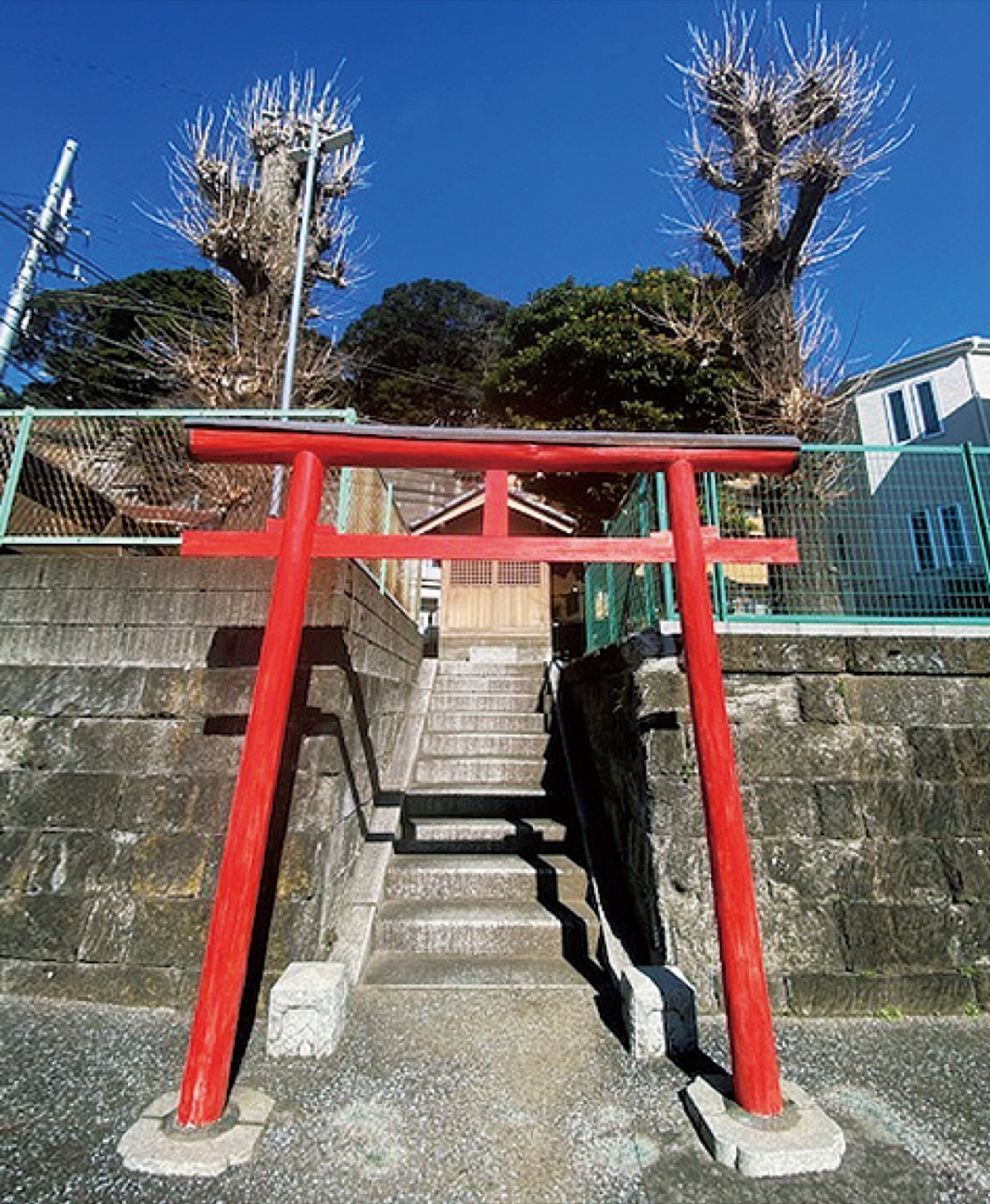 権現様は、道路を背にして建っているのではなく、今の道路があとでお社の後ろを通っただけです。かつては目の前にあった海に向かって参道がのびていて、参道前に幕末に整備された外国人遊歩道が通っていました。今も、道路から一段下がった鳥居の前に立つと、南には美しい海が広がり、振り返ると緑一面の根岸の崖を背にした、小さくても立派な社殿がそびえていた…幕末当時の様子を偲ぶことができます。