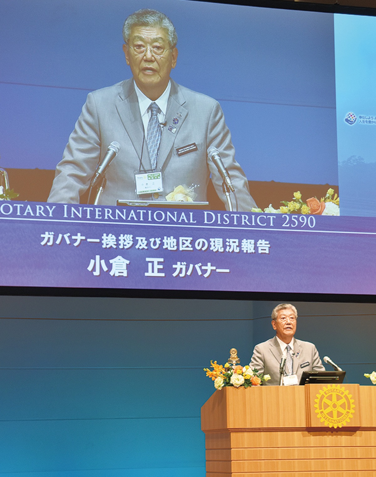 同地区を代表する小倉正ガバナーは、パシフィコ横浜の会議センターホールで行われた2日目のあいさつで、「当地区の最大の課題は会員増強にある」と指摘した。
