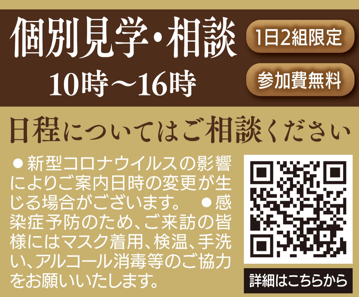 個別見学・相談の予約は【フリーコール】0120・453・286へ。