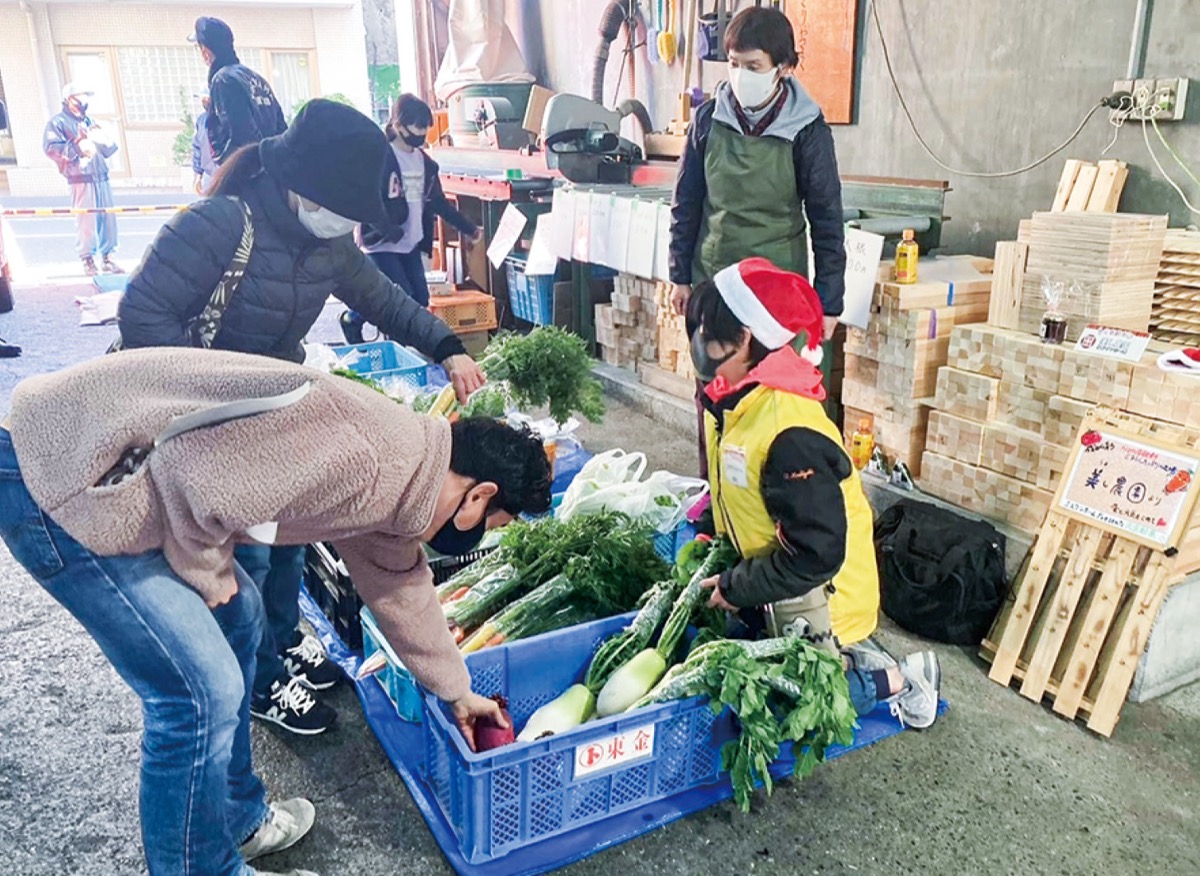 新鮮野菜やじゃがバターなどの飲食から、玉入れゲームに占い、刃物研ぎなど、盛りだくさんの「元気朝市祭」が1月16日、中区麦田町2丁目の津ノ国屋材木店を会場に開催される。午前8時から正午まで。