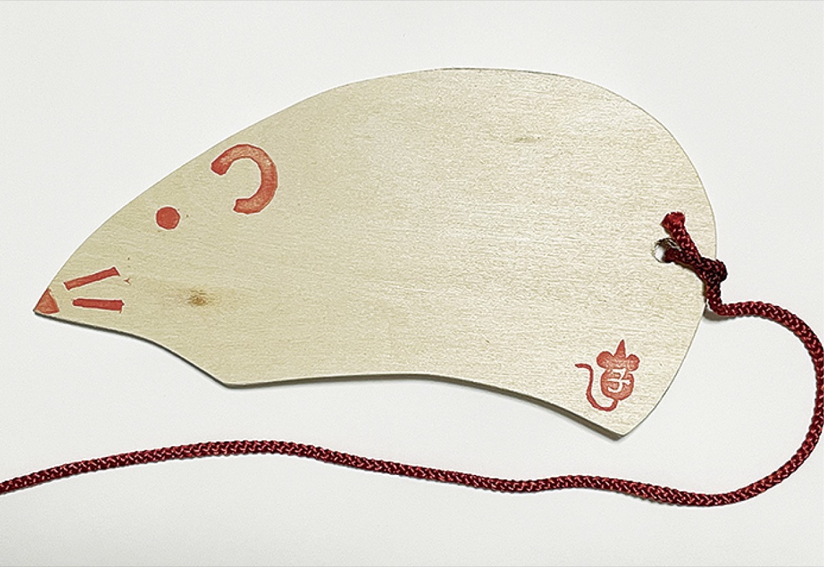 350枚におよぶ絵馬は、ねずみをかたどった木の板にしっぽに見立てた赤いひもが伸びる。そのしっぽを境内と参道に張られたロープに括り付け吊るす。風が吹くとカランコロンと優しい音を奏でる。