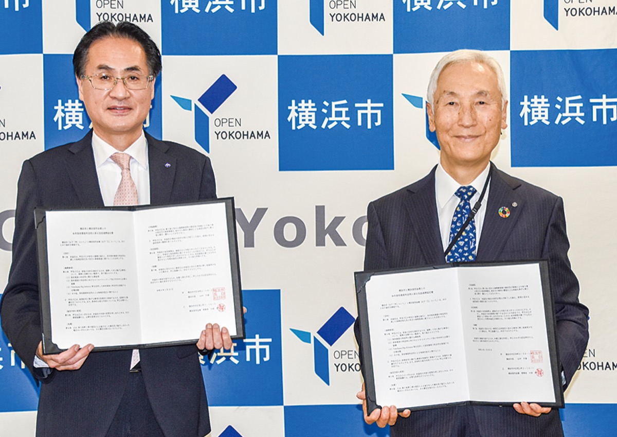 締結式で横山局長は「保有する土地の利活用を積極的に発信しているが、行政だけではなかなか難しい」と話し、今回の協定による情報発信力強化に期待を示した。横浜信金の大前理事長は「事業者の相談に応じ、地域の面的支援も行っていきたい」と話した。