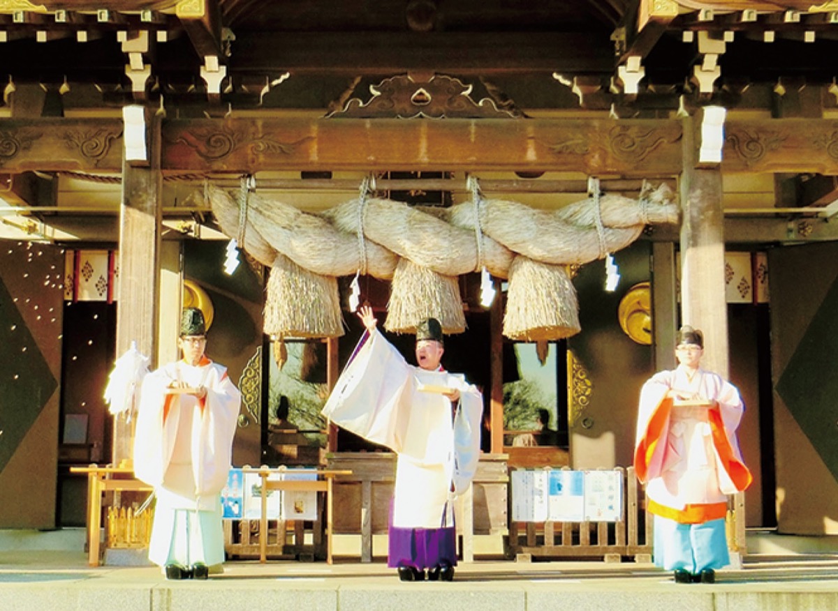 當麻宮司らが「福は内、鬼は外、開運招福、厄難消除、悪疫退散」と唱えながら、境内に豆をまいた。