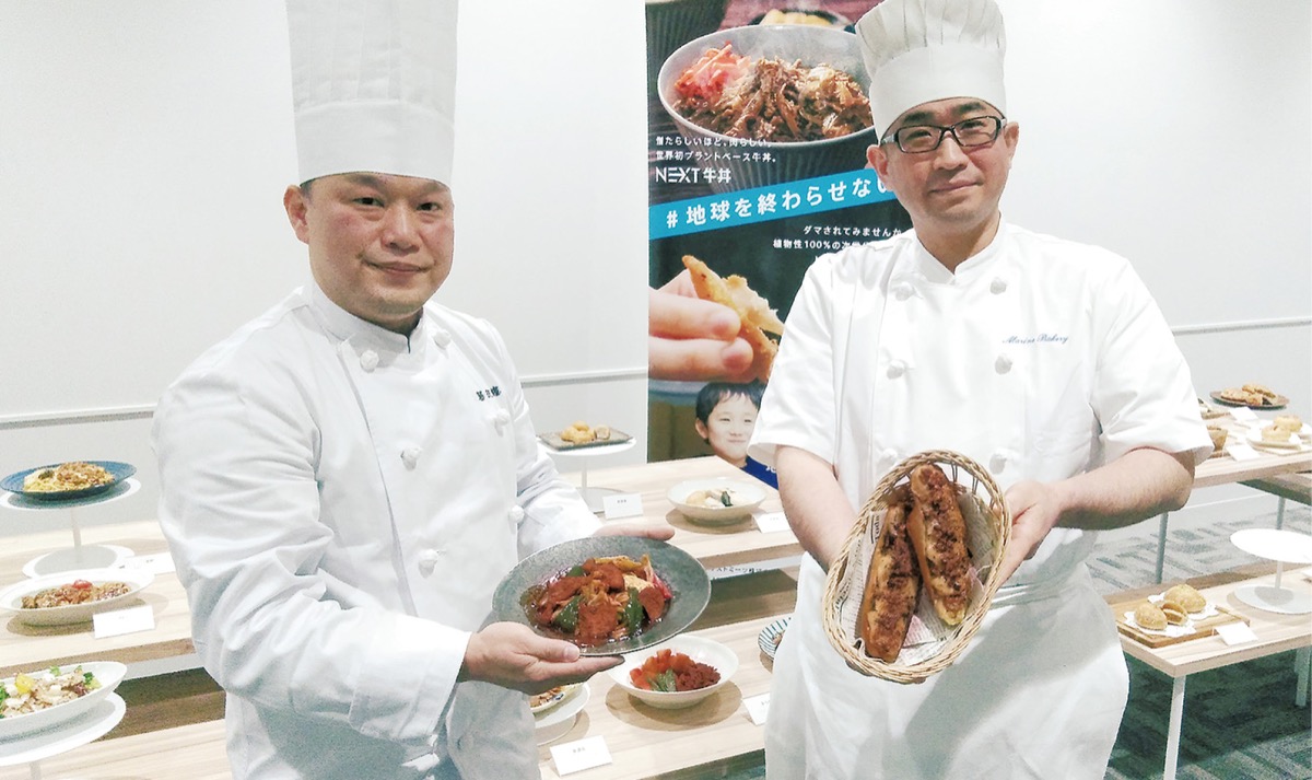 同フェアではネクストミーツ(株)=東京都=の大豆ミートを使い、横浜高島屋の地下食料品売り場にある30のブランドが商品化。和洋中の総菜やパン、弁当など、約40種類が販売される。