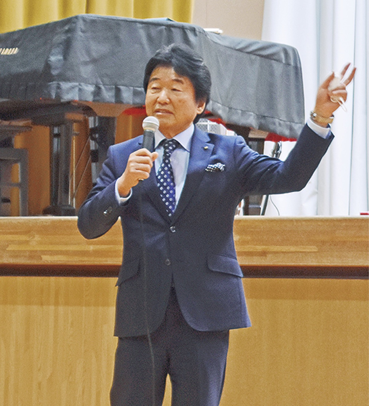 中区山手町の横浜ブリキのおもちゃ博物館館長で、テレビでもおなじみの北原照久さん(74)が3月2日、本牧中学校で卒業間近の3年生172人を前に講演を行った。