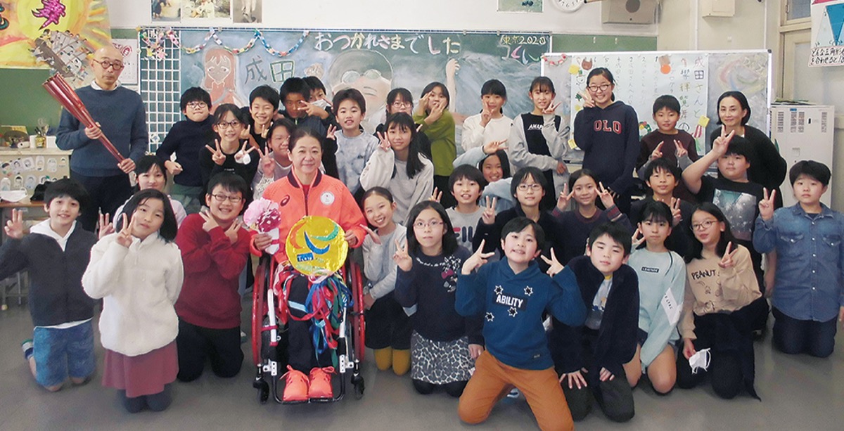「冬季パラリンピック」が北京で開催(3月13日閉幕)されるなど、改めて注目が集まるパラスポーツ。昨年夏の東京2020パラリンピックで招致委員を務め、また50m背泳ぎでは6位入賞を果たした競泳界のレジェンド・成田真由美選手(51)=横浜サクラスイミングスクール所属=が、昨年12月21日に西前小学校=西区中央2丁目=を訪れ5年3組の児童31人と交流した。