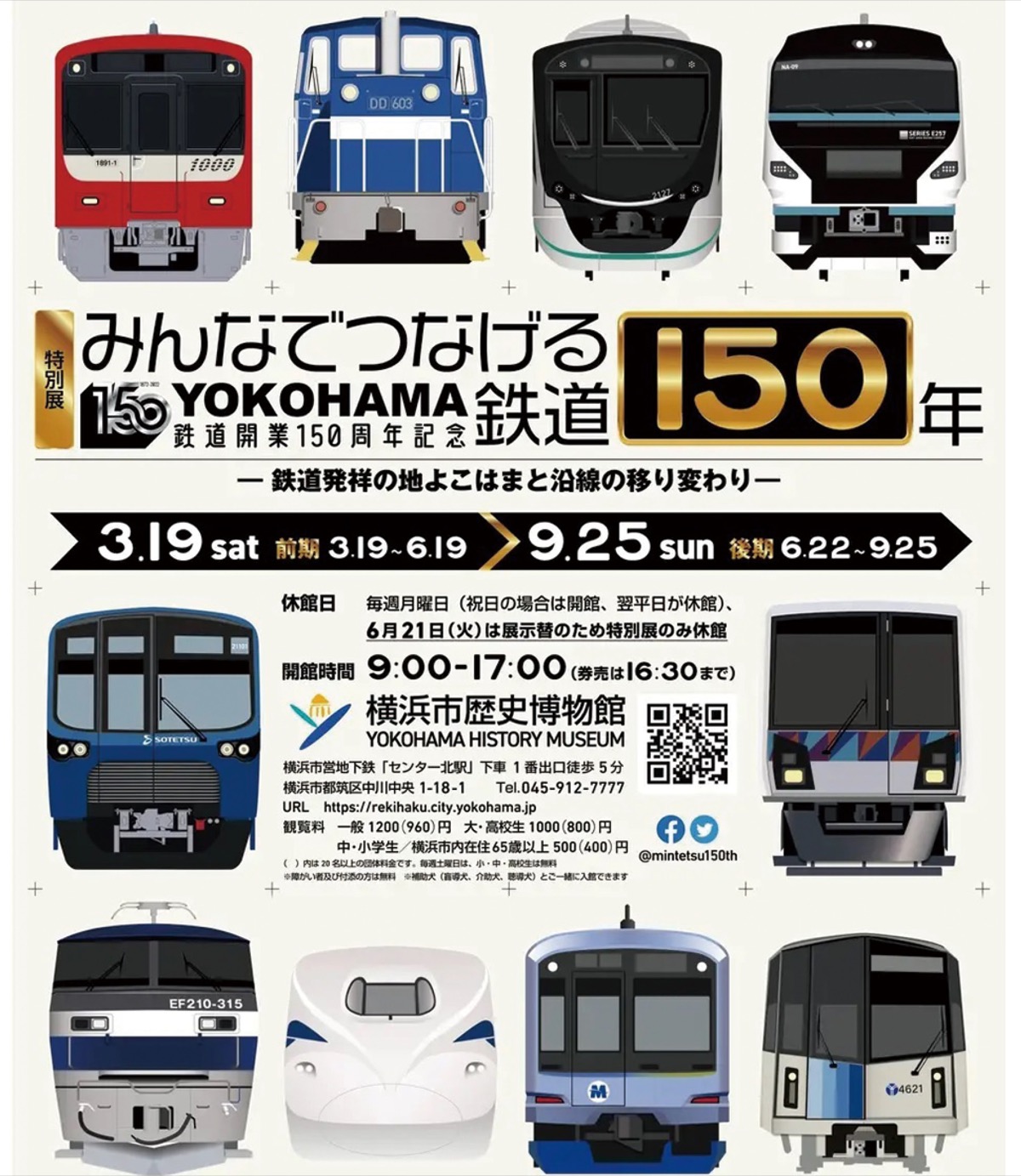 横浜市歴史博物館=都筑区中川中央1の18の1=で、3月19日から「みんなでつなげる鉄道150年―鉄道発祥の地よこはまと沿線の移り変わり―」が開かれている。