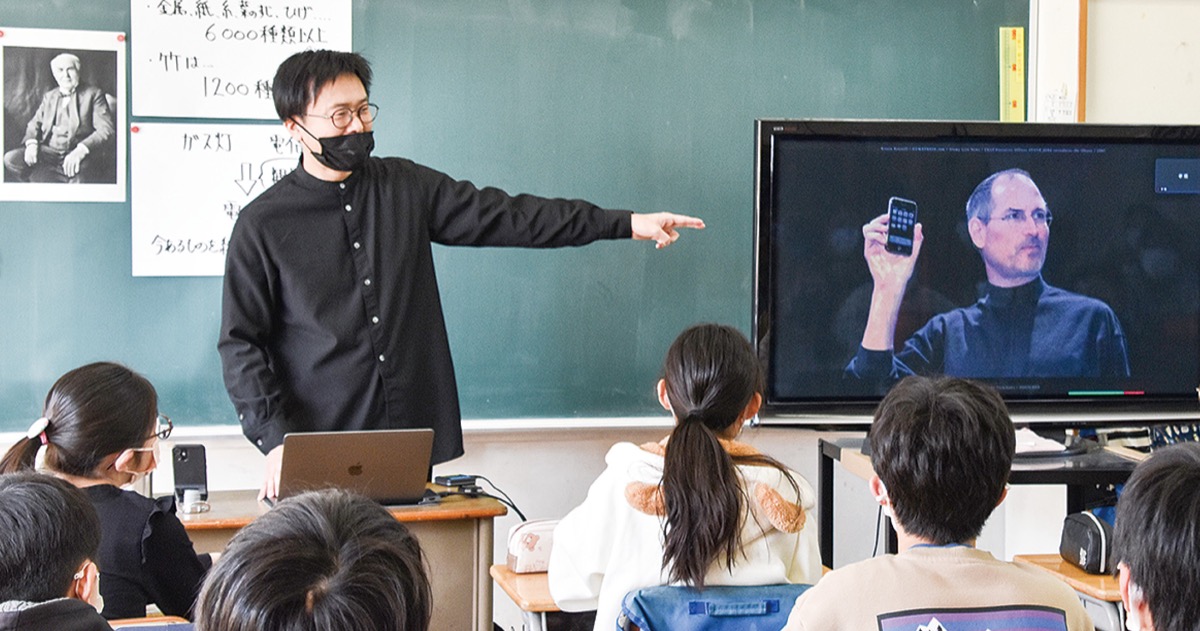 山本七平賞受賞『進化思考』の著者でデザイン事務所・NOSIGNER代表、太刀川英輔さん(41)=中区在住=が、卒業式前日の3月17日に立野小学校で6年生を対象に特別授業を行った。