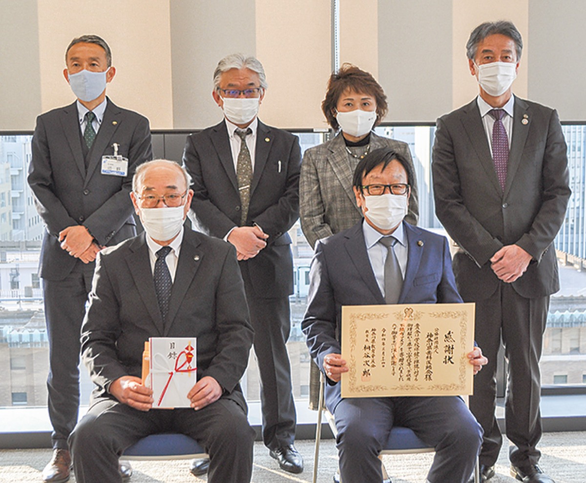 神奈川県歯科医師会(松井克之会長)がこのほど、子ども用不織布マスク21万5850枚を県に寄贈、24日に県庁で県教育委員会から感謝状が贈呈された。贈呈式には松井会長、小笠原美由紀副会長、西郷巖専務理事らが出席した。