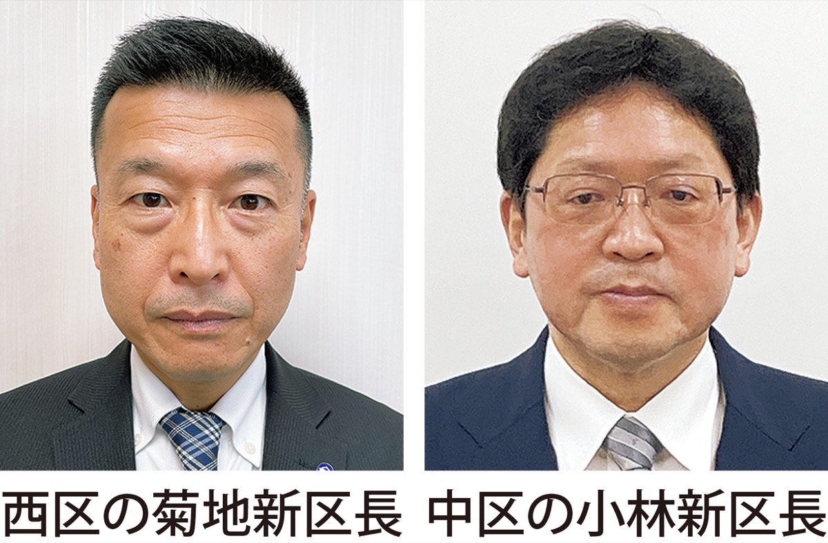 中区の直井ユカリ区長は再任用で市民局スポーツ統括室長に就く。西区の寺岡洋志区長は退任する。