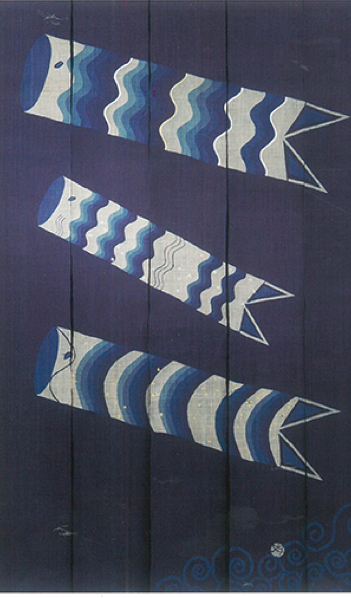 端午の節句をテーマに、染料や素材に化学薬品などを使用しない、天然の藍染め作品を展示。インテリア用品や洋服などの販売もされる。