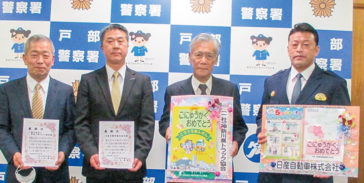戸部交通安全協会(三石孝司会長)は3月29日、日産自動車(株)と神奈川県トラック協会から交通安全を啓発する物品の寄贈を受けた。