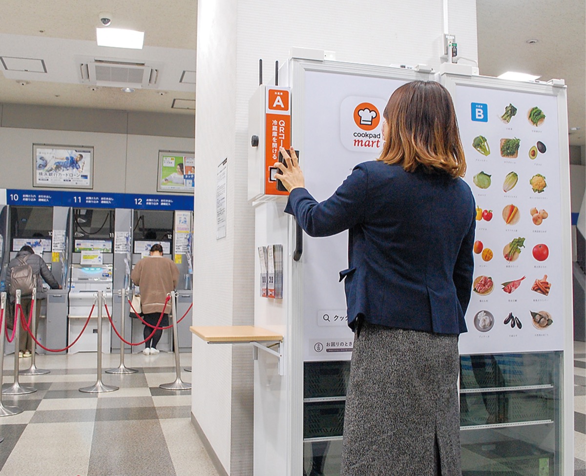 宅配サービス「クックパッドマート」は同社が提供するアプリを活用し、地域の生産者や販売店から食材を直接購入できる仕組み。インターネットで注文のあった食材を送料無料で指定の生鮮宅配ボックスに届け、購入者が引き取るシステムだ。これまでに主に1都3県の商業施設など約700カ所に「マートステーション」を設置。神奈川県内には244カ所に整備されている。4月6日からは横浜銀行の上大岡支店、弘明寺支店、磯子支店、たまプラーザ支店の4カ所に加え、京急線の京急富岡駅、金沢文庫駅、青物横丁駅にも導入する予定だ。